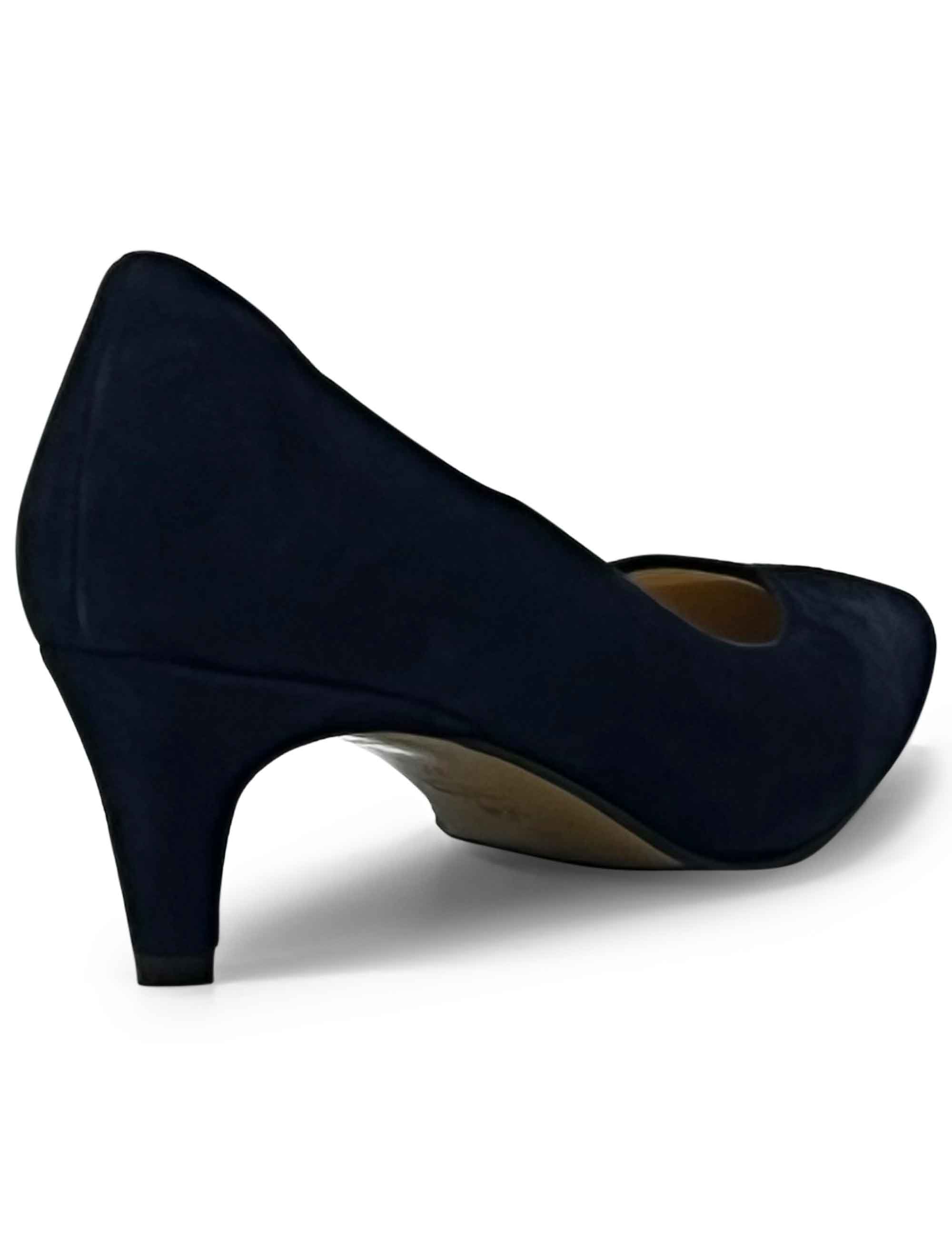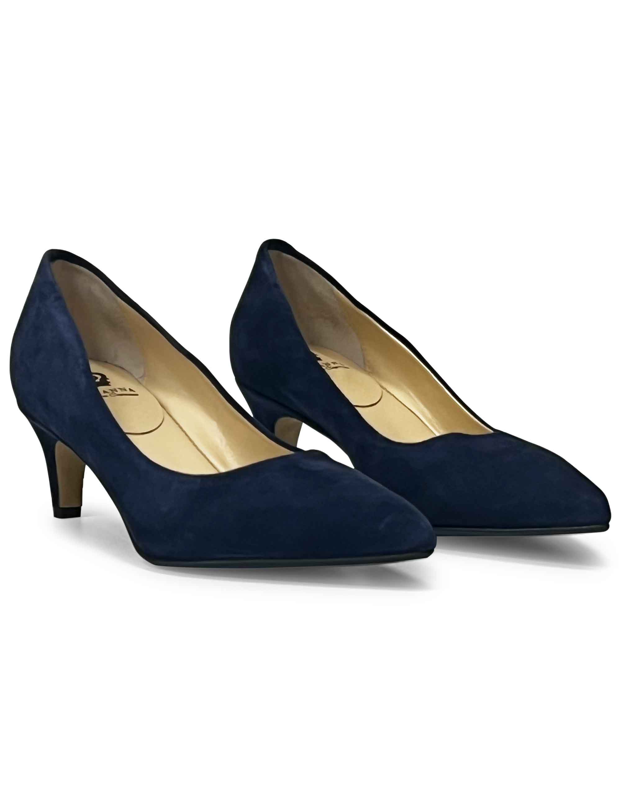 Décolleté in camoscio blu, elegante e senza tempo. Realizzata artigianalmente in Italia con lavorazione a Sacchetto per garantire comfort, flessibilità e una calzata perfetta.