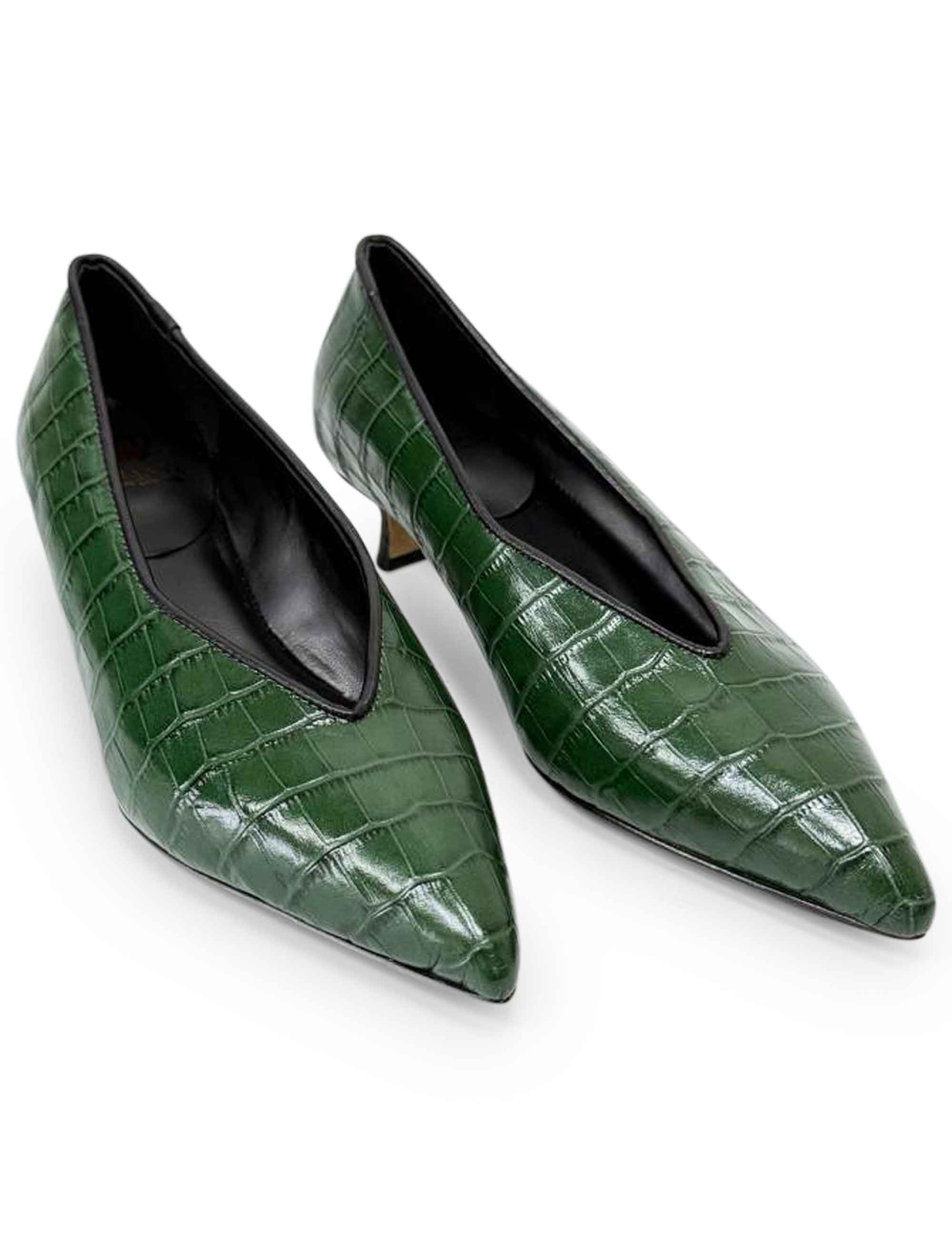 Décolleté in pelle effetto coccodrillo verde | L'Arianna DE2606/RT | Made in Italy