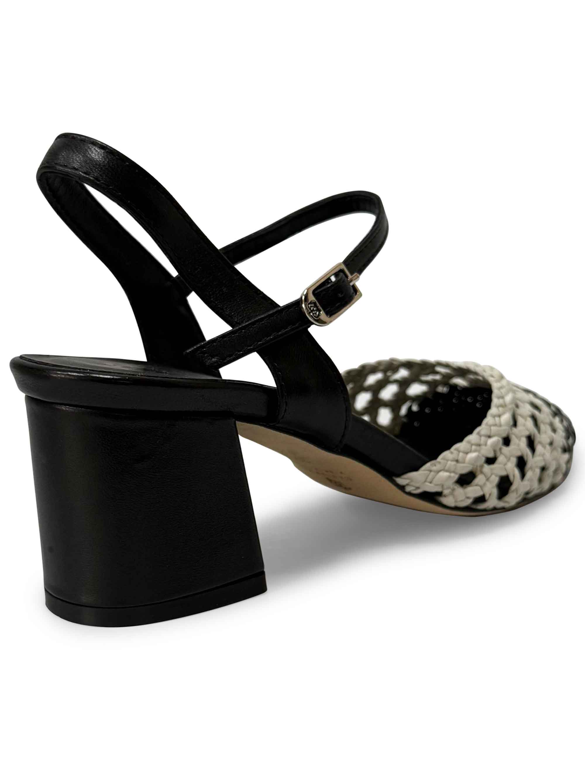 Décolleté con cinturino realizzata in pregiato intreccio di pelle nero e bianco, raffinata e femminile. Un modello elegante e versatile, ideale per completare con stile sia look quotidiani sia outfit più ricercati.