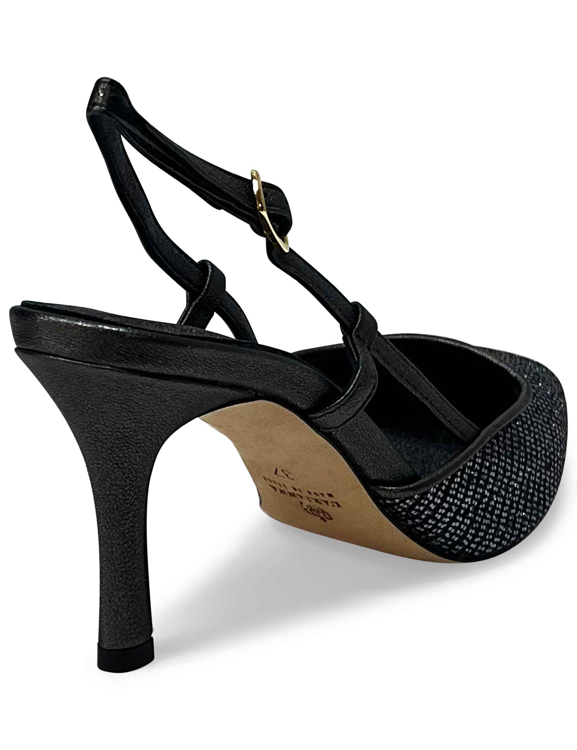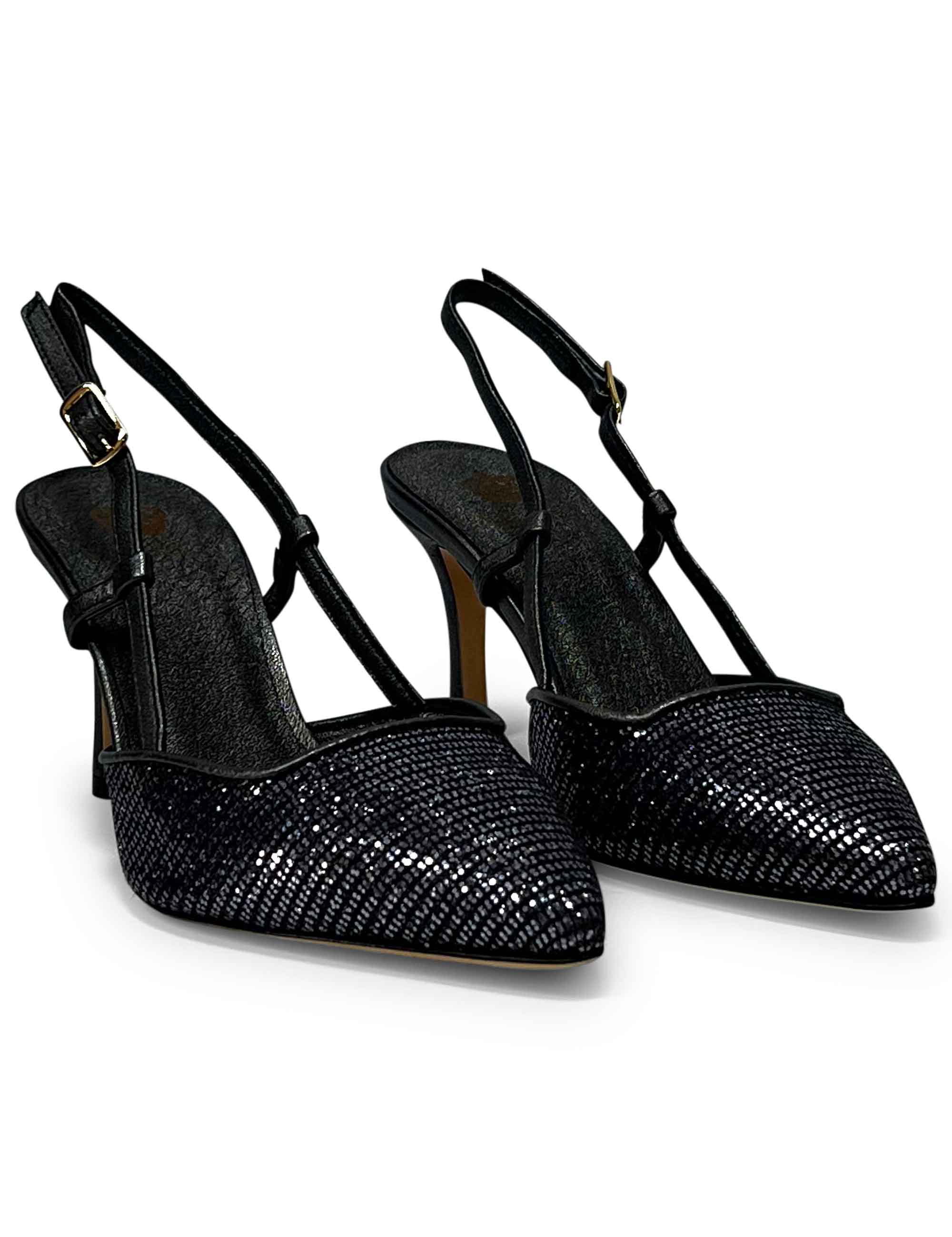 decollete slingback ch1725 in tessuto glitter moon asfalto con cinturino e tacco in pelle nera