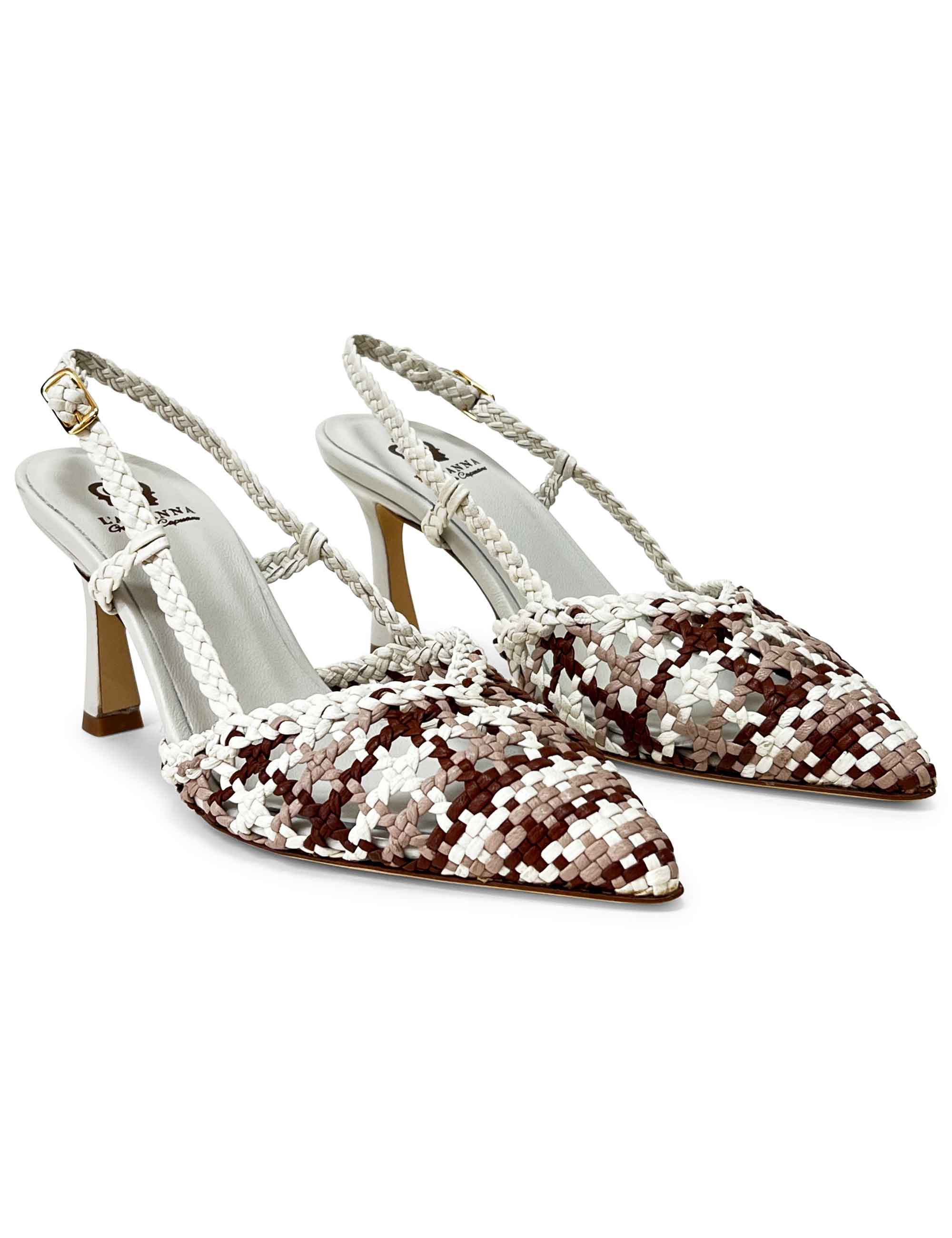 Décolleté slingback da donna in pregiato intreccio di pelle Milk Grey e Toffee, elegante e versatile. Un modello femminile e confortevole, ideale per completare look quotidiani o outfit più ricercati.