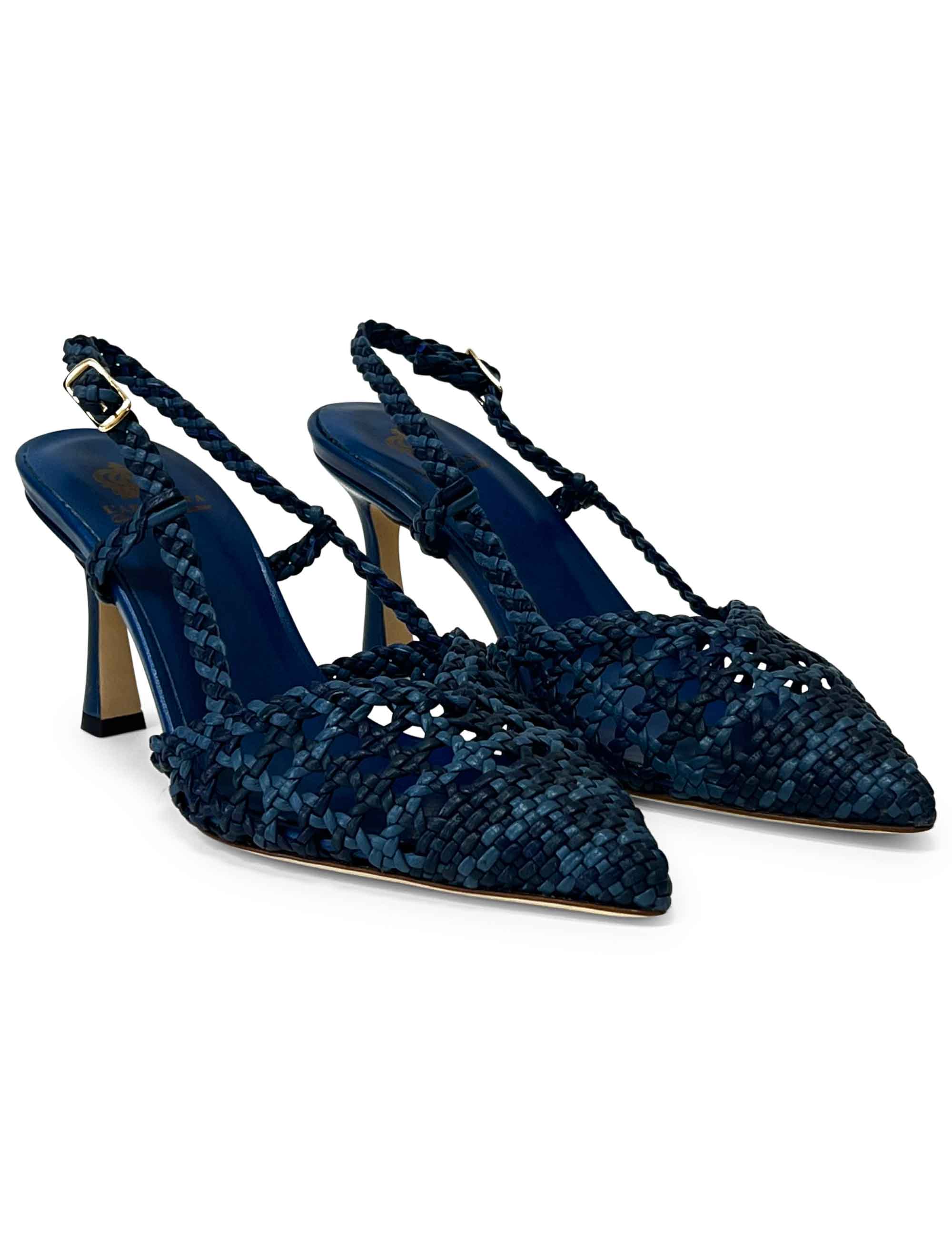 Décolleté slingback da donna in pregiato intreccio di pelle color Multi Jeans, elegante e versatile. Un modello femminile e confortevole, ideale per completare look quotidiani o outfit più ricercati.