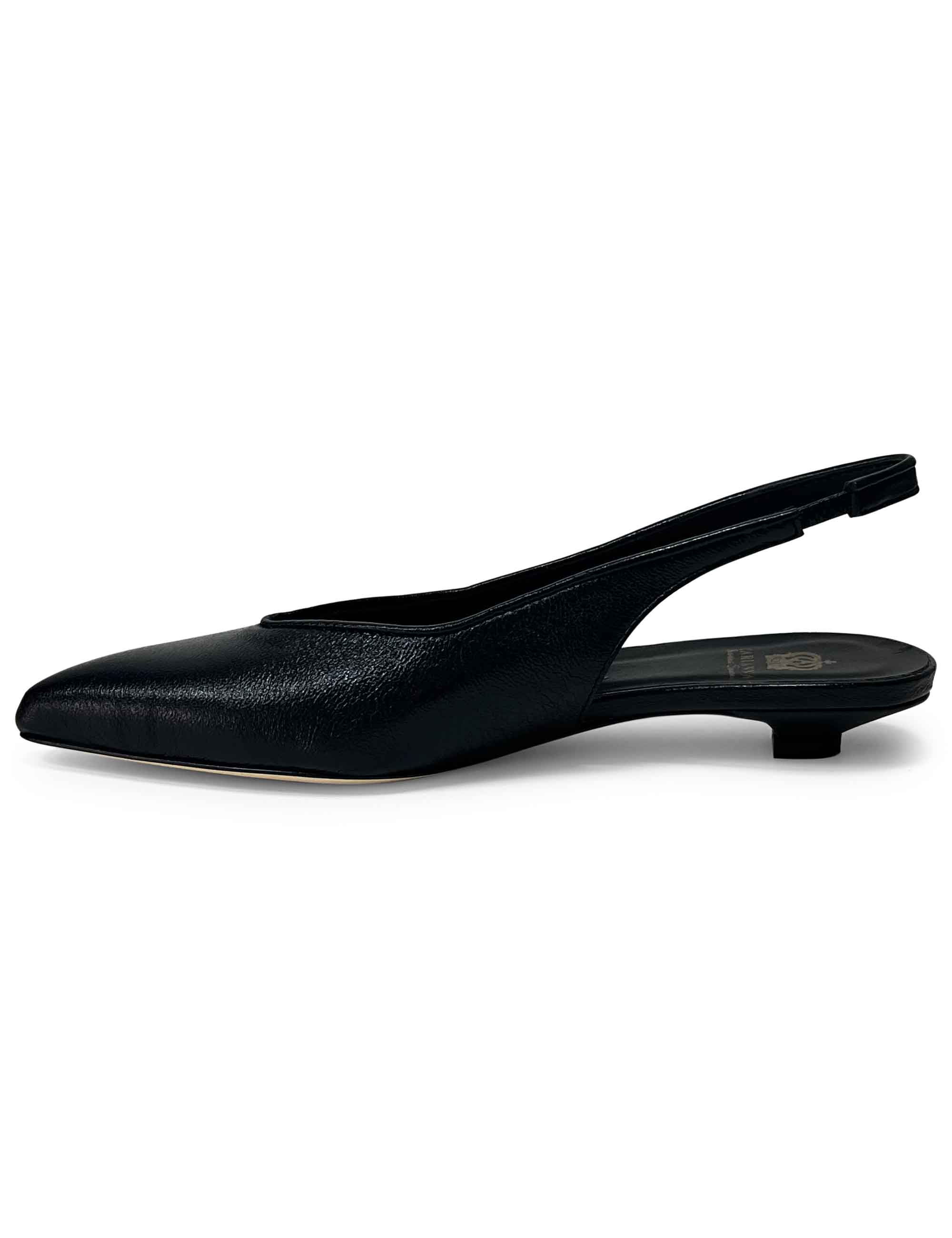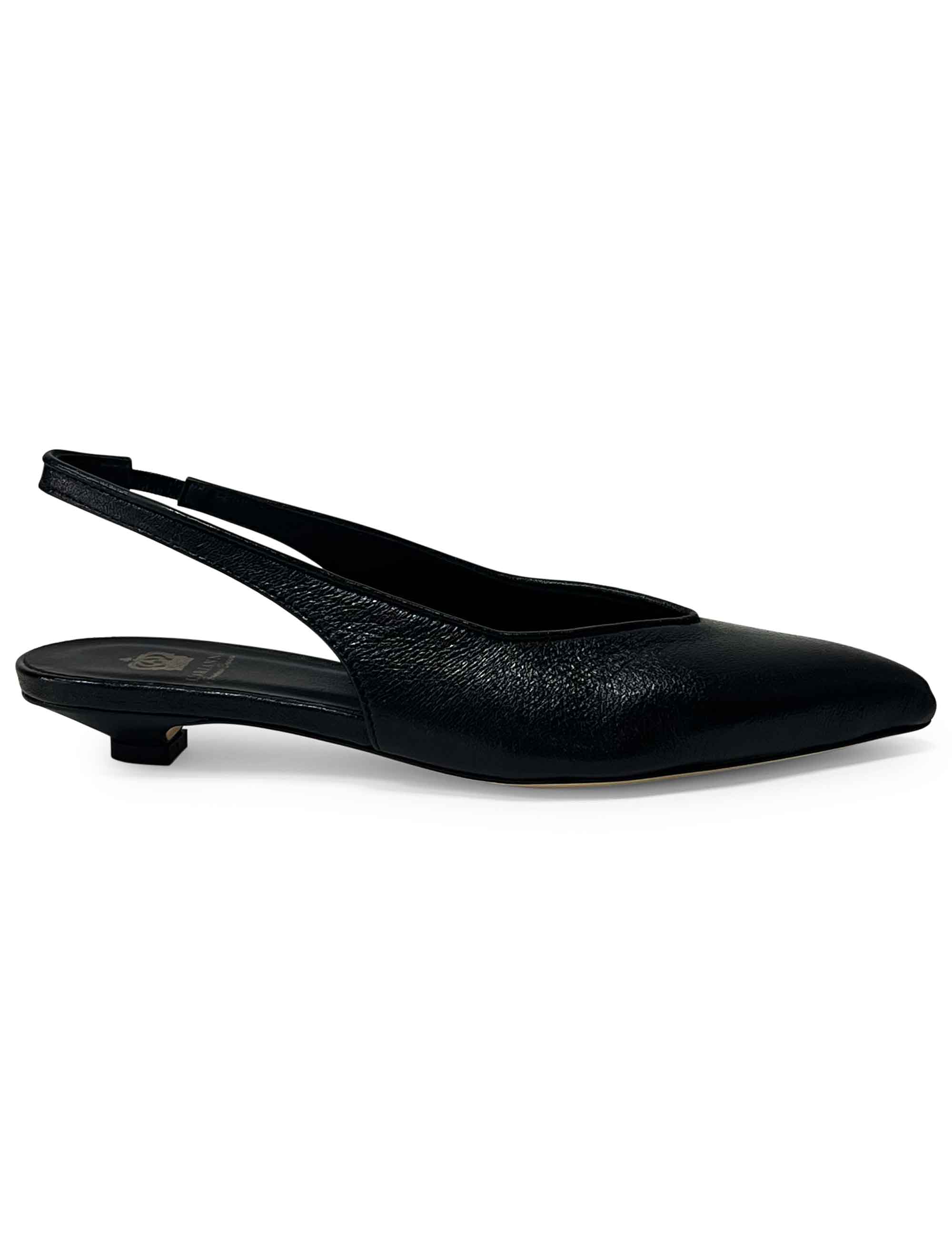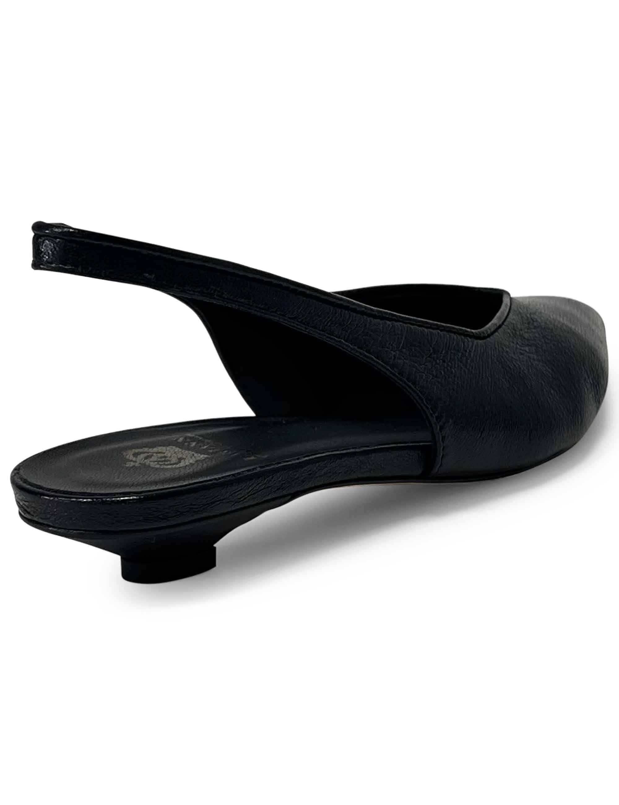 Décolleté slingback da donna in elegante laminato nero, raffinata e versatile. Un modello femminile e confortevole, ideale per completare look quotidiani o outfit più ricercati.