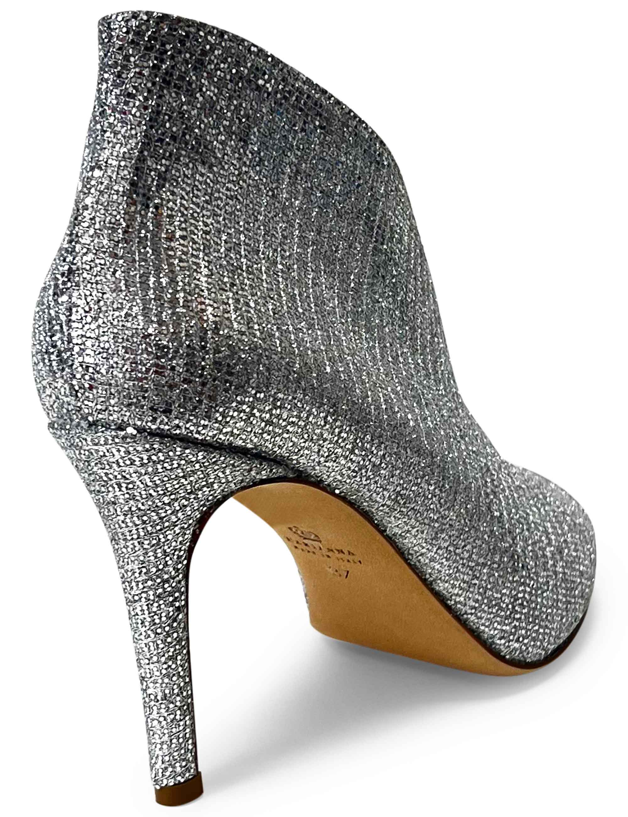 Décolleté spuntata da donna in tessuto glitter color Moon Argento, luminosa e raffinata. Un modello femminile e confortevole, ideale per completare look eleganti o outfit più ricercati.