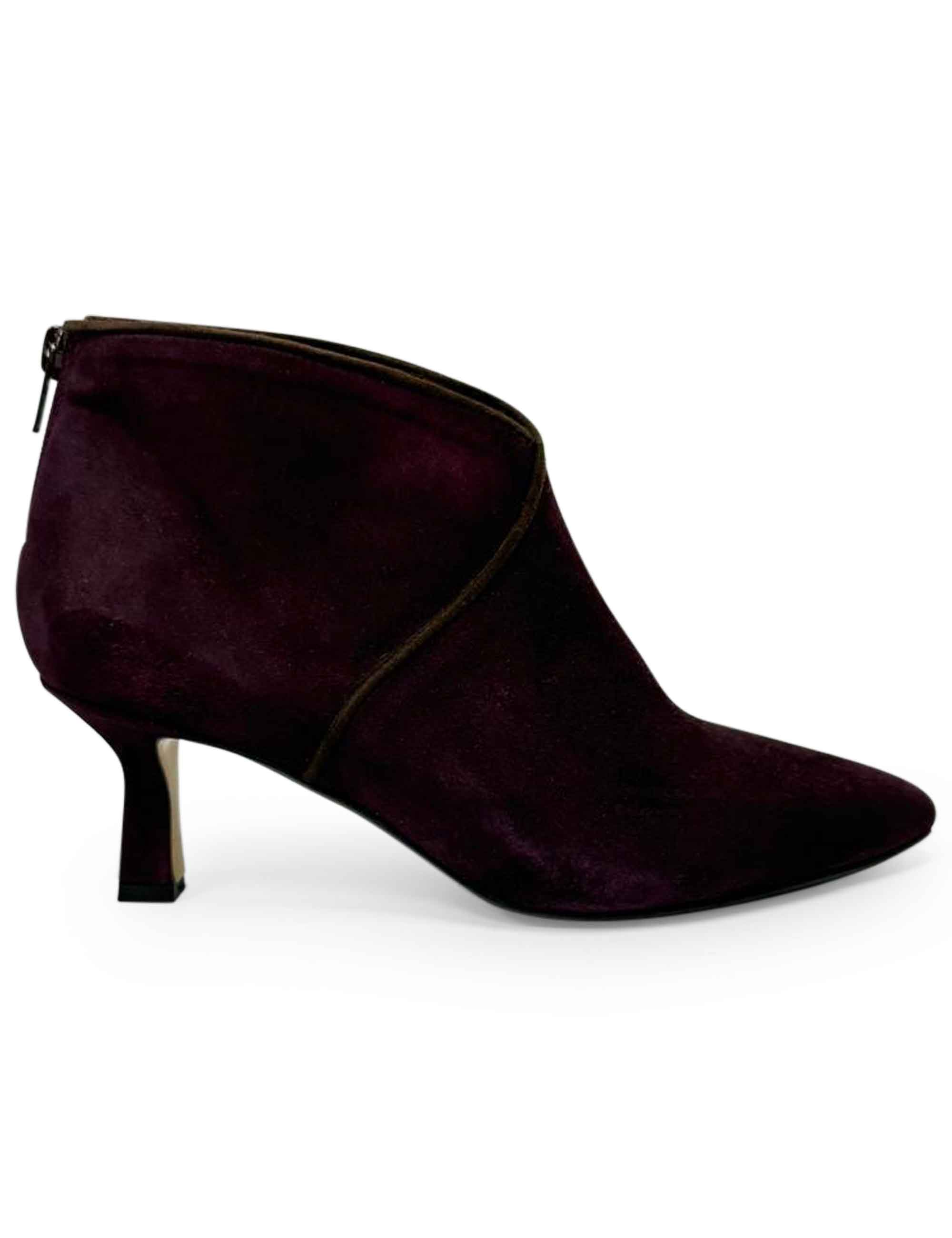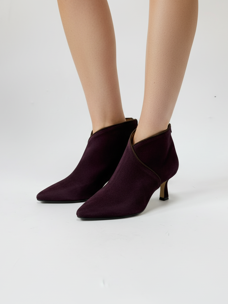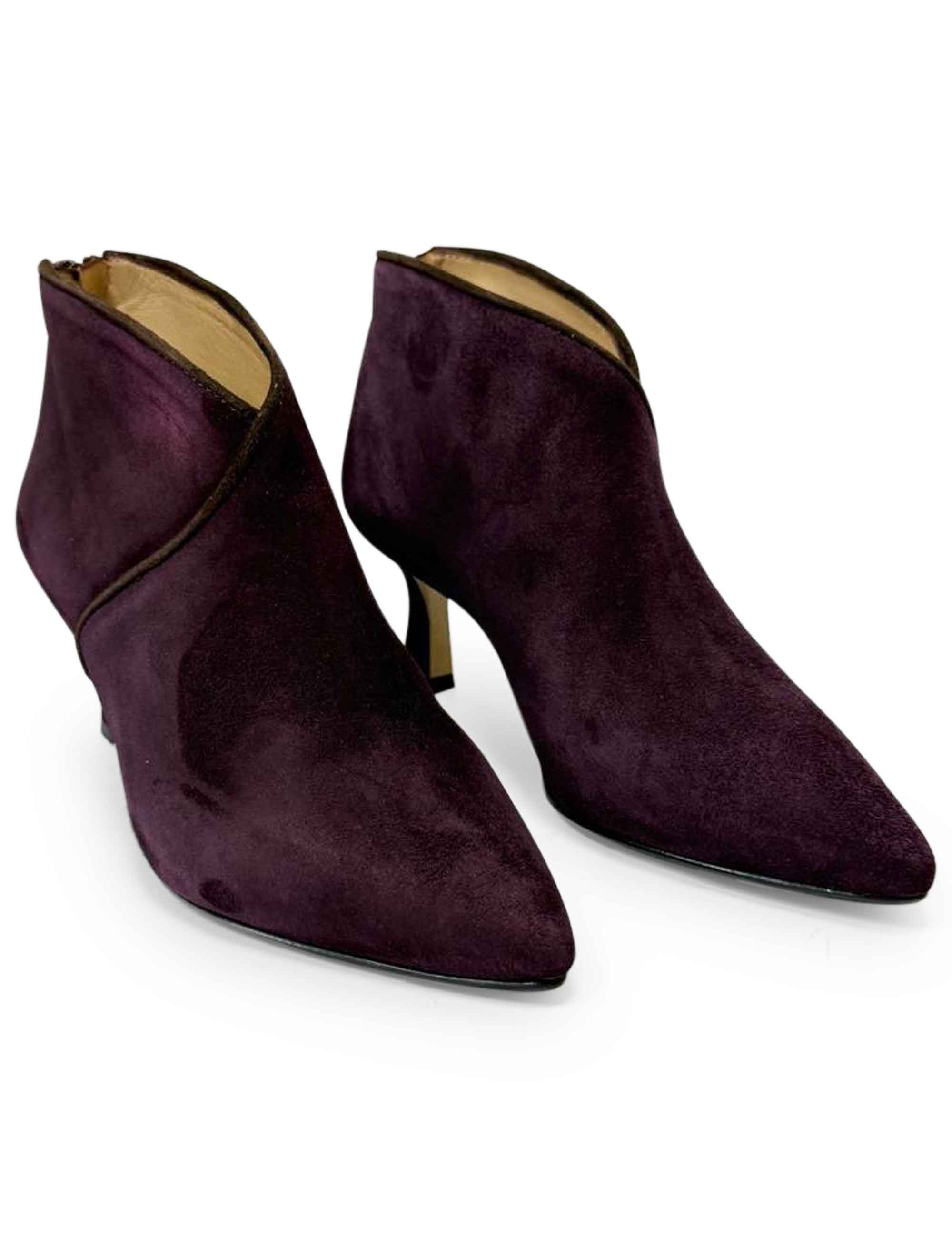 Tronchetto in camoscio melanzana, elegante e sofisticato. Realizzato artigianalmente in Italia con lavorazione a Sacchetto per garantire comfort, flessibilità e una calzata perfetta.